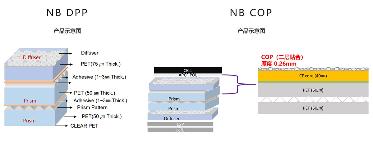 贴合膜应用于各类型LCD显示产品,主要功能在于让产品设计更薄,良好的信赖性表现, 提升自动化生产组装效率。