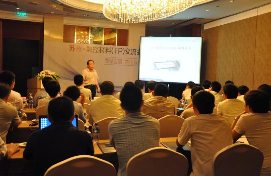 本次会议共邀请了华东、华北地区20多家厂商近40人参会;会议由苏州美之迪公司宋总主持;第一阶段由研发中心总经理吴智华先生发言,介绍了康得新公司发展情况以及光学膜项目的规划。第二阶段由溅射事业部于甄总工程师发言,介绍触摸屏行业的现状,包括各种工艺的简介,以及OGS、膜制程和metal mesh的优劣;受到与会嘉宾的热烈欢迎,与会场上嘉宾充分互动,并就嘉宾的关于彩虹纹问题解决,ITO 脆,生产过程中容易裂等损坏,KDX材料解决方式、有无独特的技术,薄型化ITO (50um)导入时间、完成工艺等问题作了详细的回答,客户均相当满意。第三阶段由溅射事业部徐明鸿副总经理发言,则介绍康得新ITO膜的现状与发展。