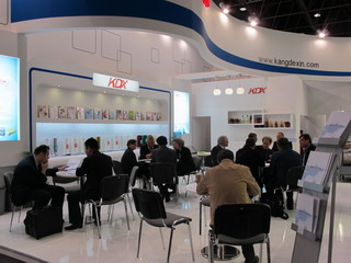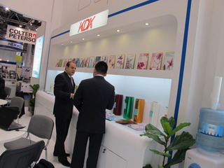 KDX所展示的各系列覆膜机得到了众多观众的参观和关注。特种膜以其专业性和功能性也受到了众多客户的青睐。其中环保膜更是符合了行业的发展趋势(绿色印刷——生态友好型生产)的需要。体现了康得新以社会责任为己任的国际化企业形象。
