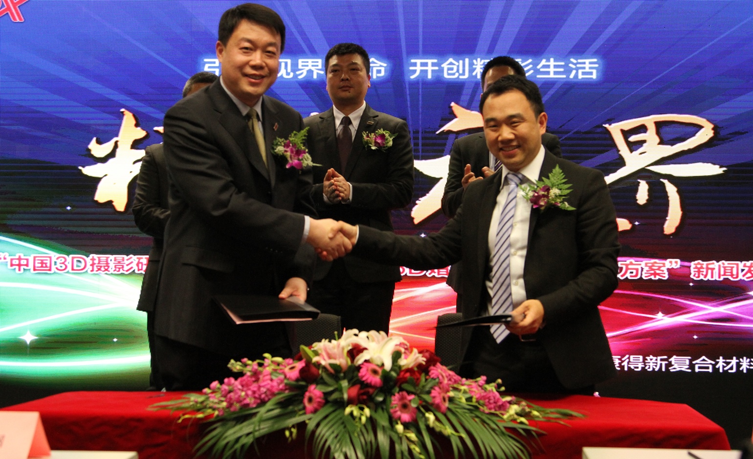 新闻发布会上康得新与广东特想数码制作有限公司等行业单位签订了战略合作协议,推进资源共享,共同开发高端影楼3D相册、画册等产品,拓展3D 图像、影像产品像应用领域。