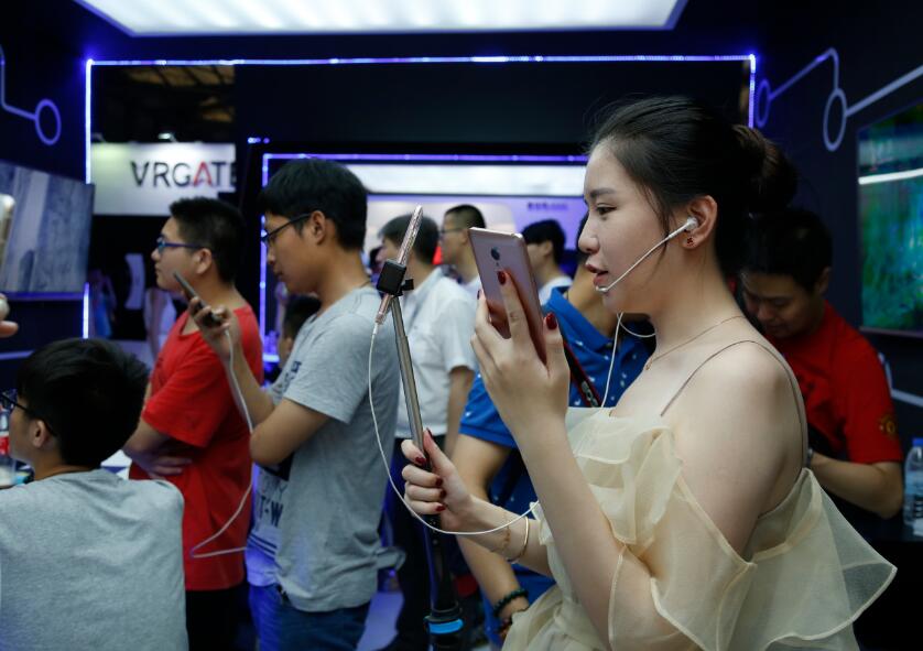 图为主播用观3D V5手机体验裸眼3D游戏。