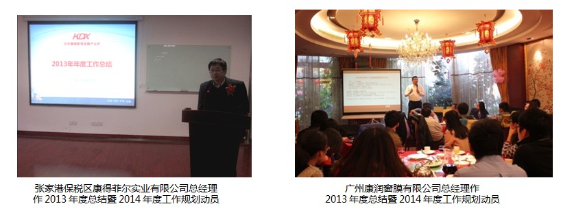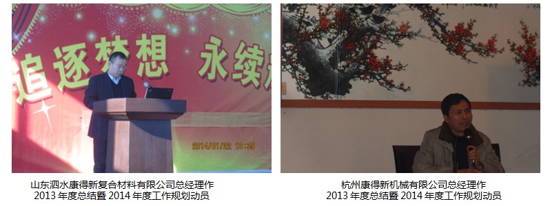各分子公司的领导汇报了一年来各分子公司的情况,总结了过去的2013年,充分肯定了康得新人在过去一年里努力奋斗取得的工作成绩。通过讲解2014年度重点工作规划,明确工作要求,统一了目标,理清了思路,希望在新的一年里,各分子公司继续发扬康得精神,不断创造佳绩。