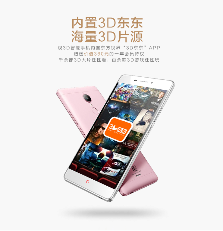 目前,观3D V5手机,内置 “3d东东”APP,尊享价值360元一年会员特权:独家播出2016年3D版《中国好声音》,另有千余部(年内达到万余部)3D大片随性看,百余款3D游戏任性玩。极致的视听享受,优惠的会员价格,众多一线品牌手机,都难以与观3D V5手机比肩。
