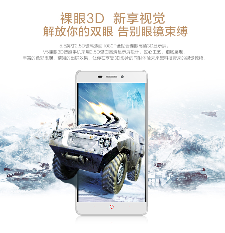 观3D V5手机搭载了康得新的全球领先的裸眼3D技术,无需佩戴辅助设备和受制于特定场景限制,便可随时随地乐享3D视界,打造属于自己的个性化的3D移动影院。多年来,康得新通过不断技术创新,成为全球首家技术横跨3D图像、3D影像两大领域的产业平台。