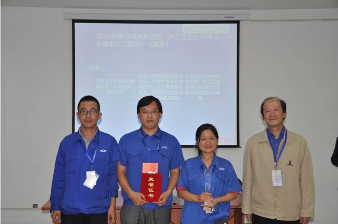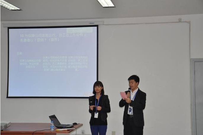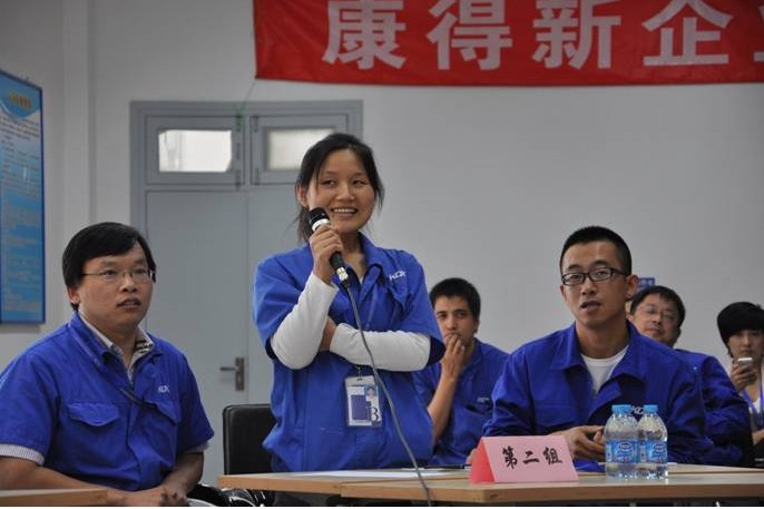 在前两天的初赛中,大家有了优异的表现,经过激烈的角逐,每个选手都已经具备了相当的实力,对于公司企业文化的学习、理解都非常充分,在这样的氛围下,我们的决赛现场不断高潮迭起,气氛热烈。作为康得新人,有必要对康得的文化有深入的了解,以增强自身的使命感和社会责任感。在决赛中一共有四个环节:团队必答题、个人必答题、风险题及现场互动。在决赛的现场,各个参赛团队反应迅速,竞相展现丰富的企业文化知识。就在比赛当天现场,出现了让所有康得新人难忘的一幕,我们的竞赛中有一道题是需要我们的选手准确的描述出康得司歌歌词,证劵部李春燕用歌声热情洋溢的唱出了司歌,而在场的每一位康得新人无不一起哼唱,那个场面既让人感觉温馨,又让人感觉振奋。当天,每个团队的正确率都极高,难分伯仲,在团队合作的环节,大家密切配合,将比赛一次次推向高潮!