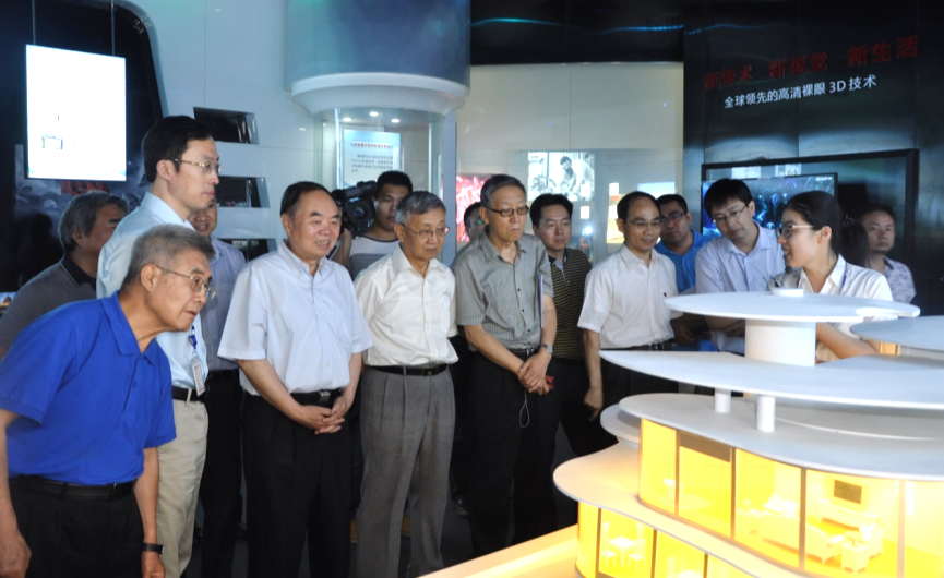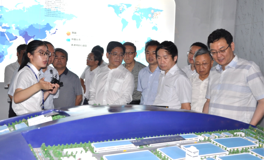 周济院长(前排左三)在观看康得新发展历程,徐南平副省长(前排左四)