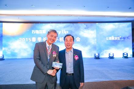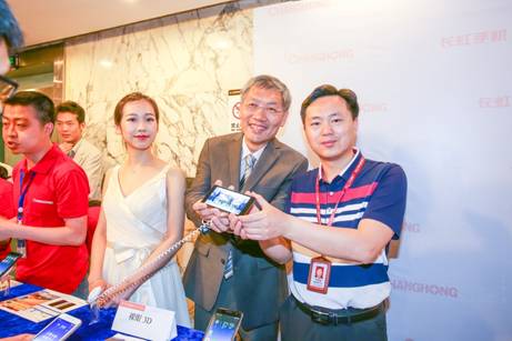 【康得新张总与长虹通信科技程元兵总经理展示裸眼3D手机】