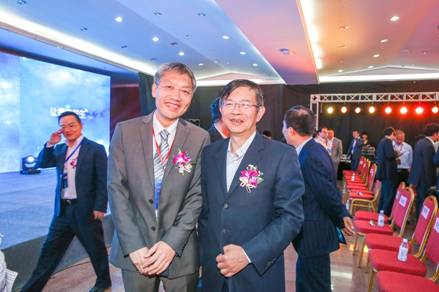 【康得新裸眼3D负责人张飚与长虹通信科技总经理程元兵合影】